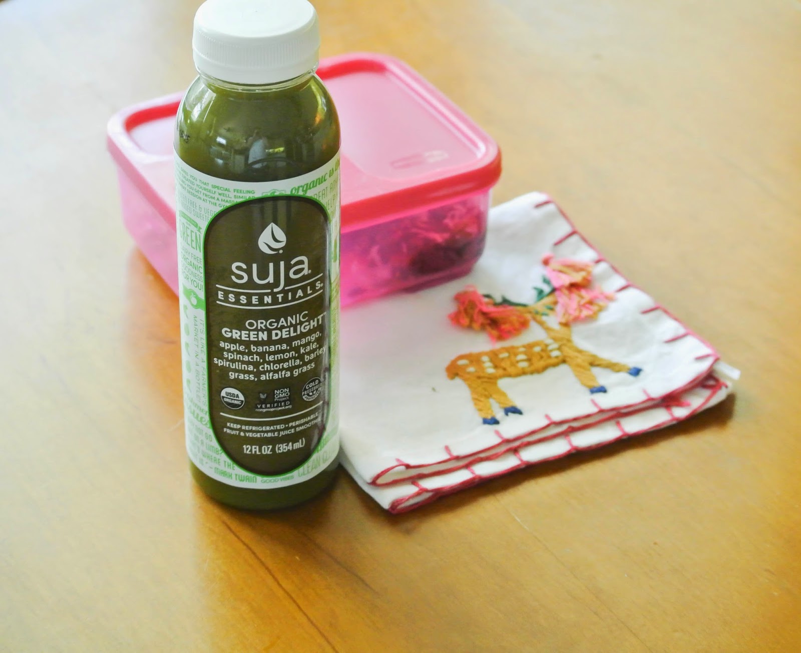 -Suja Cold Pressed Juices. I am obsessed with these! Especially the "Green Delight" flavor. It's so refreshing and instantly makes my skin glow! I pick these whenever I feel under the weather and they perk my mood right up!